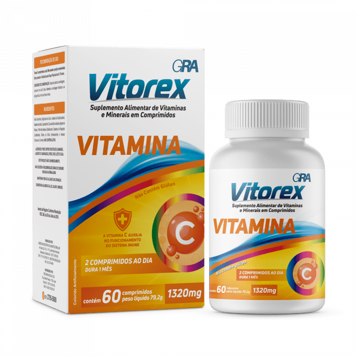 - Vitorex Vitamina C: Fortalece o sistema imunológico, auxilia na absorção de ferro e atua como antioxidante.